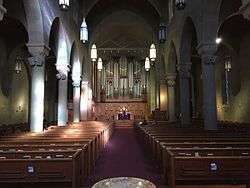 The cathedral's Aeolian-Skinner organ is a historical instrument that encompasses part of the first organ in the city of San Diego, built in 1887[6] and moved with the church to its present location in the 1950s. It was expanded several times with additional ranks and keyboards. In 2011, the Cathedral raised funds for organ restoration, and the instrument was dismantled and sent to Missouri for a complete restoration. A temporary, digital organ was installed in its place. The restored Aeolian-Skinner organ was back in place by December 2012.[7]