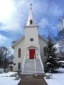 St. Paul's Episcopal Church in the village of Put-in-Bay on South Bass Island in Lake Erie was established in the fall 1864 by The Rev. John Miles Kendrick and the local residents. They started out meeting in the school. Over the winter they raised funds to build a church building. In May 1865, at the close of the Civil War, philanthropist Jay Cooke purchased the property where the church sits and contributed to the building fund. The Carpenter Gothic church was completed in October 1865. It appears to have been built from a design in the book Rural Architecture by architect Richard Upjohn. The first service was attended by the new congregation and several guests including Salmon P. Chase, Jay Cooke, and the Rev Parvin, who was the first rector of St. Paul's, Elkins Park PA,[2] where Jay Cooke was a vestry member.[3] After serving the parish for three years Rev Kendrick moved to larger churches and became the Bishop of the Episcopal Missionary Diocese of Arizona and New Mexico in 1889.[4]