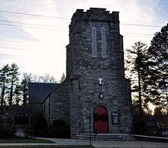 St. Philip's Episcopal Church is a historic Episcopal church located at 317 E. Main Street in Brevard, Transylvania County, North Carolina. It was designed by noted architect Louis Humbert Asbury and built in 1926. It is a tall one-story, Normanesque Revival style stone structure on a nave plan, with a narthex/tower on the main elevation and a chancel on the rear. It has a two-story bell tower and stained glass windows.[2]