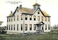 In 1896, the people of St. Mary's (Assumption) Parish saw the need for the community’s English-speaking children to have their own school. This was the beginning of St. Vincent Grade School. The building was erected on the north side of St. Joseph Street. In 1907, four Daughters of Charity arrived from Emmitsburg, Maryland to provide Catholic education for St. Vincent Grade School. This religious order served the people of Perryville for about 90 years. By 1915, the old school had become inadequate that a new school building was built on the south side of St. Joseph Street. When classes began in the new DePaul School in 1917, there were 10 Sisters on the faculty and 332 students in both the grade school and high school. The DePaul School housed classes Kindergarten through grade twelve until 1947.[10]