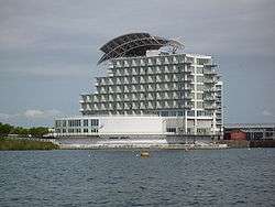 The first five-star hotel in Wales,[2] the building features a sweeping sail-topped roof and a lofty atrium lobby. The 142-room hotel was owned by the Rocco Forte Hotels group, until purchased by Principal Hayley Group in 2007. Situated on Cardiff Bay, the hotel overlooks Mermaid Quay and the Cardiff Bay Barrage.