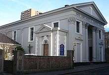 St John the Baptist's Church is a Roman Catholic church in the Kemptown area of the English city of Brighton and Hove. It was the first Roman Catholic church built in Brighton after the process of Catholic Emancipation in the early 19th century removed restrictions on Catholic worship. Located on Bristol Road, a main road east of the city centre, it is one of 11 Catholic churches in Brighton and Hove.[1] The Classical-style building, which was funded by Maria Fitzherbert and completed in 1835, has been listed at Grade II* by English Heritage for its architectural and historical importance.