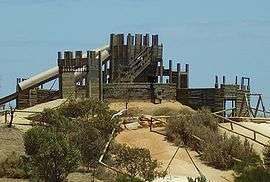 St Kilda's adventure playground covers 4 hectares along the seafront and is one of South Australia's best known. The playground has a constructed shipwreck, wooden castle, huge slides, a spiral slide inside a hill, flying foxes and numerous other pieces of play equipment, with South Australian children naming it in 2002 as the best adventure park in the state.[11]