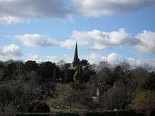 The ecclesiastical parish of West Hoathly covers a large rural area of West Sussex near the towns of East Grinstead (to the north), Haywards Heath (to the south) and Crawley (to the west). Ashdown Forest lies to the east. The parish boundaries are not coterminous with those of the civil parish of the same name; they take in the villages of West Hoathly and Sharpthorne and the fields and farms surrounding them.[35][36] Although the ecclesiastical parish of Highbrook has been separate since All Saints Church was built in 1882 on the initiative of two wealthy sisters who lived in the hamlet,[3][37] the parishes are informally "twinned" and are part of a united benefice with the official title The Benefice of Highbrook and West Hoathly.[35]