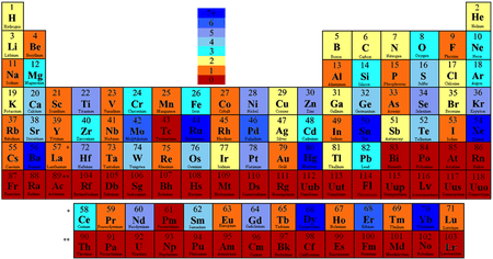 | 118 | oganesson | 8.9×10−4 s | 294 Og [f] |