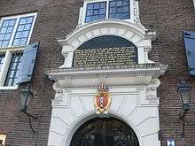 The bank was built in 1614 as a conversion of an old warehouse used by the poorhouse O.Z. Huiszittenhuis that had been used to store turf for the inhabitants.[1] In 1658 the poet Joost van den Vondel became a clerk there. He worked a total of 10 years for the bank and his "bank chair" has been kept.[1]