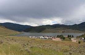 Stagecoach Dam is a gravity dam on the Yampa River in Routt County, Colorado, located about 20 miles (32 km) south of Steamboat Springs. Built of roller-compacted concrete, the dam is 145 feet (44 m) high and 360 feet (110 m) long. The impounded water forms Stagecoach Reservoir, with a storage capacity of 33,700 acre·ft (41,600,000 m3) and a surface area of 780 acres (320 ha) at maximum pool.[1] The dam serves for irrigation, municipal water supply, and flood control, and it also supports a hydroelectric power station with a capacity of 800 kilowatts.[2]