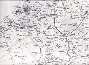 The 30-mile (48 km)-long Ottoman front line stretched southeastwards from Gaza and dominated the country to the southwest, where the EEF was spread out in open, low-lying, rugged country interrupted by many deep wadis.[24] From Gaza to Beersheba, this front line "stretch[ed] continuously for almost fifty kilometres."[19] Major defensive outposts along the line, such as Rijm el Atawineh and Aba Hareira, could support each other; and, as they overlooked an almost flat plain, making a frontal attack against them virtually impossible.[25] Between Gaza and Aba Hareira, at the Wadi el Sheria and halfway to Beersheba, the Ottoman defences were especially strong. Although those strengthened defences did not extend to Beersheba, strong fortifications, some being blasted from solid rock, made the isolated town a fortress.[26]