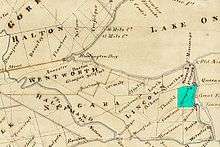 The first survey took place around 1776, during the American Revolutionary War. Twelve European-American families came to settle in the area, including the Cooks and Durhams from New Jersey.[1] It was developed and settled initially by Loyalists, primarily from New York State and other areas of the British colonies with the first two settlers being the Bender and McMicking families. [1] and later the Thompson and Bastedo families, among numerous others.