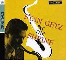 Stan Getz at The Shrine is a jazz live album by American saxophonist Stan Getz, recorded in 1954. It was originally released in 1955 on Norgran Records (which would be absorbed by Verve Records in 1956), then reissued on CD by Verve as MGV 8188-2. This was the first concert recording for Stan Getz. Quoting Norman Granz: "Last year, 1954, I presented a nationwide concert tour with the Duke Ellington band, the Dave Brubeck Quartet, the Gerry Mulligan Quartet, and the Stan Getz Quintet. On the closing night of the tour I decided to record the Getz portion of the concert, and since the tour closed at the Shrine Auditorium in Los Angeles, it was there that this album was recorded.........As it often happens at these concerts, you can't time them as well as you could a regular recording date, and Stan ran over his allotted time........we had enough material for 1 1/2 albums, and rather than lose the extra half, we have added to the second side of the second LP two compositions: "Feather Merchant" and "We'll Be together Again", which Stan recorded immediately the following night, with virtually the same personnel, the only change being Frank Isola on drums in place of Art Mardigan."