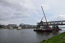 Starý most (English: Old Bridge) is a bridge over the river Danube in Bratislava, Slovakia. The 460 meter long bridge included a wooden pathway for pedestrians, a two-lane road and railway track, connecting the historic old city of Bratislava with the newer region Petržalka. The bridge was closed for cars in 2009 and for buses on 14 May 2010. On 2 December 2013 it was also closed for pedestrian and bicycle traffic because deconstruction of the bridge began the last week of November. At the time of its closure it was the oldest still-standing bridge in Bratislava.