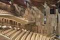 Although there is an inconspicuous lift, the main entry to the first floor foyer of the theatre is by a staircase over which hang spectacular decorative elements. The foyer is timber paneled like the auditorium.