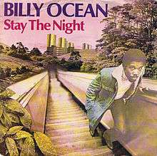 "Stay the Night" is a 1980 song by Billy Ocean taken from his album City Limit. It was released as the follow-up to his hit single "Are You Ready?", and was also released as the b-side to this single in some countries. The song has been covered by La Toya Jackson and sampled by dance artist Lady on the 2002 Brazilian hit single "Easy Love".[1][2]