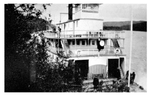 The first motorized vessel on the Peace system was the SS Grahame, built by the Hudson's Bay Company in Fort Chipewyan in the winter of 1882-83.[1] She carried freight 200 miles (320 km) up the Peace to Vermilion Chutes, where the company’s goods were portaged around the rapids and reloaded into a flotilla of scows and canoes for the journey onward."