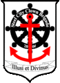 The White Shield is the main logo of The Steel City Clown Brigade. The white stands for purity and red for the Blood of Christ. The wheel represents the scriptures as the navigator of our lives. The anchor represent Christ as the anchor of our lives. "Illusi et Divinues" is Latin for "To be ridiculed is divine".