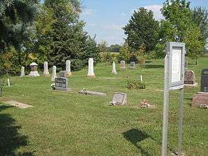 The history of Steelesville Cemetery dates back to the 1860s when the first Swedish immigrants to the area arrived and settled in the farming community south of Dassel, Minnesota. Most all of these settlers arrived with personal belongings of little value, but rich in Christianity along with their deep seated trust in God. On February 13, 1873 a meeting was called and held at the house of Sven Harling for the purpose of discussing the advisability of organizing a new Lutheran congregation. Out of that meeting came a congregation named “The Swedish Evangelical Lutheran Congregation of Steelsville, Meeker County, Minnesota”. At the first annual meeting, held January 2, 1874, it was reported that a piece of land had been procured and a church building erected without debt, in Section 11, a place better known as the Dahlman Skog. At this location ten children and three adults members were buried. Two and a half years later the road past the church was closed. As a result, on September 20, 1876 Sven Harling, although never a member of the church, agreed to donate one acre of land in the southwest corner of his Section 3 farm and a decision was made to move the log church building. In early 1877 the church building was relocated to the site. The fee ownership of the land was then transferred on February 4, 1878.[1] The church building was placed in the southeast corner of the one-acre lot as the road at that time, better known as the Dassel-Hutchinson Stage road, was then located on the east side of the present day Steelesville Cemetery. Shortly thereafter, in the same year, a petition was presented by ten men of the congregation, to relocate the congregation and build a new church building in Dassel, Minnesota. On September 26, 1877, a congregational decision was made: 1) that the högmässo gudstjänster, or the högmässo worship be held in Dassel, Minnesota after the beginning of 1878; 2) that services on Sunday afternoons and week days be held in Steelesville; 3) that even after the congregation is moved to Dassel, this property (Steelesville Cemetery) shall always be kept – the grounds for a cemetery and the building for school purposes. Thirty years later in 1908 the Steelesville church building was sold to John Bredeson. The building was moved to his farm and used as a barn. In 1919 extensive cemetery improvements were completed. All monuments were removed, then plowed, leveled and reseeded. The monuments were replaced, and the whole acre surveyed into lots with walks between each row. On March 31, 1970 the Steelesville Cemetery Association was incorporated as a nonprofit organization. On June 12, 1928, the congregation of The Swedish Evangelical Lutheran Congregation of Steelsville, Meeker County, Minnesota, changed its name to "First Evangelical Lutheran Church of Dassel, Minnesota". On February 16, 1981 the congregation again changed its name to "Gethsemane Evangelical Lutheran Church of Dassel, Minnesota". The cemetery continues to be owned by the same congregation since its inception.[2][3][4][5][6][7][8][9]