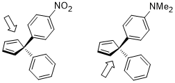 The inward rotation transition state of the second shown below is relatively favored for acceptor R substitutents (e.g. NO2) but is especially disfavored by donor R substituents (e.g. NMe2).[20]