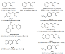 When referring to stimulants, the parent drug (e.g., amphetamine) will always be expressed in the singular; with the word "substituted" placed before the parent drug (substituted amphetamines).