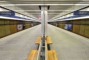 Metro Stokłosy is a station on Line M1 of the Warsaw Metro, located in the Imielin neighbourhood of the Ursynów district in south Warsaw at the junction of Aleja KEN, Herbsta Street and Jarzębowskiego Street. It is situated between Imielin and Ursynów stations.