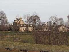 Stone Hall is a historic home located at Cockeysville, Baltimore County, Maryland, USA. It is a manor house set on a 248-acre (1.00 km2) estate that was originally part of a 4,200-acre (17 km2) tract called Nicholson’s Manor. The house was built in four sections; the initial stage consisted of a 1 1⁄2-story fieldstone structure built before 1783; the north and south wings were added between 1783 and 1798; the 2 1⁄2-story, gable-roofed, fieldstone main block at the north end; and a 1 1⁄2-story fieldstone addition, built about 1930. Also on the property is a barn, carriage house, and a blacksmith shop.[2]