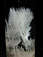 - ↑ Tanaka, Yasuko; Hagano, Koichi; Kuno, Tomoyasu; Nagashima, Kazushige (1 May 2008) [1 February 2008]. "Pattern formation of crystals in storm glass". Journal of Crystal Growth. 310 (10): 2668–2672. Bibcode:2008JCrGr.310.2668T. doi:10.1016/j.jcrysgro.2008.01.037.