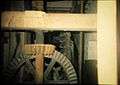 This corn mill still retains its machinery. The overshot waterwheel is 8 feet 4 inches (2.54 m) wide and 6 feet 8 inches (2.03 m) diameter, driving the machinery via a cast iron ring gear with 72 teeth. There were originally four pairs of millstones, of which two remain, driven by a system of belts and pulleys. This dates from the 1840s, when the mill was reworked by Messrs. Holman's of Canterbury. There was a twin cylinder self-condensing steam engine by Hall's of Dartford, built in 1840 which provided auxiliary power. This was dismantled and donated to the Newcomen Society in 1920. The original intention was that this would be displayed in the Science Museum, but it later passed to the Henry Ford Museum in America.[15]