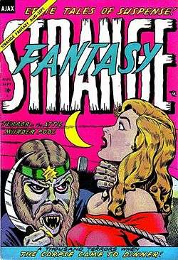 Strange Fantasy is a 36-page, 10 cent, bi-monthly, anthology horror comics title published by Ajax-Farrell in the early 1950s. Its initial issue cover dates October 1952 and its last issue October/November 1954, for a total of 13 issues. Comic book jungle girl Rulah (called Pulah in the book) makes an appearance in issue 3 and a bondage cover graces issue 13. Artists on the title include writer Bruce Hamilton and penciller, inker, and cover artist Steve Ditko. Strange Fantasy was formerly Rocketman (with one issue) and picked up where Rocketman ceased publication. Strange Fantasy is then numbered 2-14 rather than 1-13. The title left newsstands in 1954, the victim of the Senate Subcommittee on Juvenile Delinquency. Copies in Near Mint condition command prices in the hundreds of dollars.