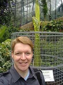 Stuart Meeson also has a very keen interest in amateur horticulture.[19] He is a member of many UK based horticultural societies and exhibits regularly at their horticultural shows. He was awarded the RHS Banksian Medal at the Dogmersfield, Winchfield and Crookham Village Horticultural Show 2010.[20] In 2011 he was awarded the Ernie Self Novice Trophy[21] at the Orchid Society of Great Britain (OSGB) Autumn Show. Later in 2014 he was awarded the RHS Banksian Medal at the OSGB Spring Show[22] and a Certificate of Appreciation for orchid Masdevallia mendozae 'Mullus' by the RHS Orchid Committee in March 2015.[23] At the 25th Anniversary Show he was awarded an RHS Gold medal and Best Flower Box at RHS Hampton Court Palace Flower Show 2015.[24]