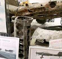 The Ju 87 V1, powered by a Rolls-Royce Kestrel V12 cylinder liquid-cooled engine, and with a twin tail, crashed on 24 January 1936 at Kleutsch near Dresden, killing Junkers' chief test pilot, Willy Neuenhofen, and his engineer, Heinrich Kreft.[10] The square twin fins and rudders proved too weak; they collapsed and the aircraft crashed after it entered an inverted spin during the testing of the terminal dynamic pressure in a dive.[11] The crash prompted a change to a single vertical stabiliser tail design. To withstand strong forces during a dive, heavy plating was fitted, along with brackets riveted to the frame and longeron, to the fuselage. Other early additions included the installation of hydraulic dive brakes that were fitted under the leading edge and could rotate 90°.[12]