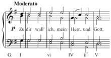 Chord progression from the tonic to supertonic, resolving to the dominant[1]  Play .