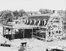 The Canadian government established a border station at this crossing in 1896, and the US began renting a building for its US Customs officer in 1907. The road through Huntingdon was relocated in 1913, resulting in the Customs office being in a poor location. US Customs built a new border station on the east side of Cherry Street in 1914, and rented part of it out as an automotive repair shop. In 1932, as traffic continued to grow, and in response to smuggling during prohibition, the Sumas border station was upgraded once again in 1932. In 1949, the operating hours of the Sumas border station were expanded to 24 hours. The building was large and ornate, but when it was once again deemed inadequate in 1988, a fourth Sumas border station was planned. Rather than demolishing the historic building, the decision was made to move the 714 ton brick building intact to Harrison Avenue, where it stands today. Construction on the current US border station was completed in February 1990.[2]