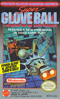 Super Glove Ball is a game made by Rare in 1990 for the Nintendo Entertainment System, specifically designed to be played with the Power Glove controller.[3] However, it can also be played with a standard NES controller. It was sold separately from the Power Glove.