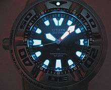 Super-LumiNova is a brand name under which strontium aluminate–based non-radioactive and nontoxic photoluminescent or afterglow pigments for illuminating markings on watch dials, hands and bezels, etc. in the dark are marketed. This technology offers up to ten times higher brightness than previous zinc sulfide–based materials.