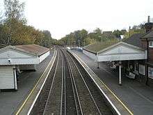 - ↑ Butt, R.V.J. (1995). The Directory of Railway Stations. Yeovil: Patrick Stephens Ltd. p. 225. ISBN 1-85260-508-1. R508.