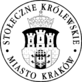 The seal is round and consists of the coat of arms surrounded by an inscription with the city's official name: Stołeczne Królewskie Miasto Kraków, or "Royal Capital City of Cracow".