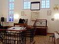 A square bimah with two entrances is located in the middle of the room, also rounded by a balustrade. Formerly, a 180 kilograme, menorah with the Polish Eagle on the top was located in Synagogue. It was given to the yeshiva by the Jewish kehilla from Przemyśl.[1]
