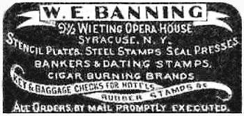 - ↑ "W. E. Banning Stamp & Stencil Works". Sunday Times. Syracuse, New York. December 1877.