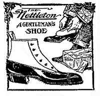 The A. E. Nettleton Shoe Company started in business in 1879 when Albert E. Nettleton purchased James Barrett's factory in Syracuse. In July 1901, the firm added an addition to the building "so as to double the output."[17] By 1904, Nettleton hired Henry Cook as factory superintendent. During 1910, the company advertised that they were the "makers of the world's finest footwear for men."[37] The company was "known for making and selling gentlemen's fine shoes from high-grade materials, craftsmen cut, sewed and formed shoes by hand." With a reputation for quality and excellence, the shoes regularly sold for higher prices. Henry Cook purchased Nettleton's interest in 1916 and was the company's principal owner for the next 50 years. Two of Nettleton's best known styles were Algonquin, introduced in 1932 and the Loafer which was introduced in 1937. The Cook family sold the company to Endicott-Johnson in 1968. Between 1968 and 1984 the company was sold again to U. S. Shoe Corporation which closed the factory in 1984. Today the old building, which was constructed about 1882, is called Nettleton Commons and is an apartment complex at 313 East Willow Street.[38]