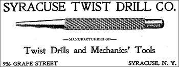 The Syracuse Cycle Company began business in 1892 and manufactured a brand called Syracuse Bicycles. There motto was "There is but one Crimson Rim -- It is the Syracuse."[31] John Wilkinson worked for the company for four years during the mid-1890s and was inventor of the air-cooled engine used in Franklin Automobile Company's runabouts, touring cars and sedans.[32]