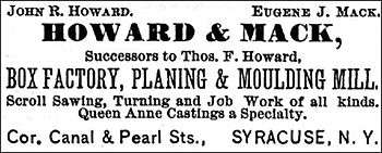 Funda & Howard Box Factory, a planing and moulding mill, was in business by 1879 at the corner of Canal and Pearl streets. The proprietors were William Funda and Thomas F. Howard. The company also performed scroll sawing, turning and job work of all kinds.[8]