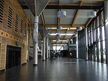 To adequately service the anticipated new airport, an existing rail line from Olsztyn to Szczytno (line 219) and a section of the disused railway 35 line between Szczytno and Szymany were renovated. The renovation allows trains to travel at up to 100 kilometres per hour on a single-track line without electrification. The tender was closed in 2011.[27] Later on a short branch line to the airport and a new station at the airport connected the service. Overall, the reconstruction of existing infrastructure and the new spur had a planned value of PLN 115m (€27.2m), of which PLN 68m (€16.1m) was funded through the European Union.[28]