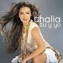 "Tú Y Yo" (English: "You and Me") is the first single from Thalía's 2002 self-titled album Thalía. The song was written by Estéfano and Julio Reyes, and produced by Estéfano. The English version can be heard in the EA Sports game, NASCAR 07 and was released on Thalia's 2003 English-language album, also titled Thalia. It topped the charts reaching number one at Billboard's hot Latin tracks, becoming her second number one single on this chart.