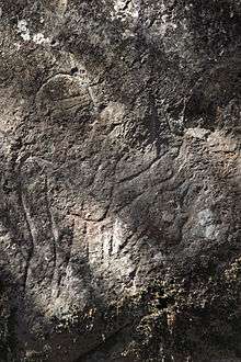 The north relief, Taşçı A, lies near the bank, about two metres above the water level, and now rises less than a metre above the soil which has built up around about. On the right hand side, it shows three robed figures facing right, who are covered by soil up to their hips. Their outlines are marked with depp grooves. The left figure is the best preserved - he is the only one where internal details can be made out. Ribbons run over their heads, a cloth hangs over their backs; from these details the figure appears to be female. Her eyes and chin are still visible, the nose and mouth area is broken. The two left figures each extend an arm; according to the 1939 sketch by Ignace Gelb, the right figure had the same posture, but this cannot be seen any more on account of heavy weathering. The central and right figures, who wear round caps, are only visible as silhouettes. All three figures are generally interpreted as priests.