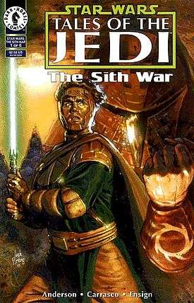 Tales of the Jedi: The Sith War is a six-part story arc in the Tales of the Jedi series of comic books written by Kevin J. Anderson. The first issue was published on August 15, 1995 by Dark Horse Comics. The story is set in the Star Wars galaxy 3,996 years before the Battle of Yavin in Star Wars Episode IV: A New Hope, and continues the story of Ulic Qel-Droma and Exar Kun. The story also shows how the current Mandalore shows great loyalty to Ulic.