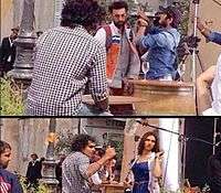 Principal photography began in Corsica, France on 9 July 2014 and was wrapped on 30 July 2014.[26] Several images and video footage of the song "Matargashti" (previously noted as "Dil Ka Bayaan") shot at Bastia Museum Café were leaked in August 2014.[27] Filming began in Shimla on 1 December 2014.[8] It featured child artist playing the young character of Kapoor in unknown flashback sequence.[28][29] Scenes with Javed Sheikh were filmed in Shimla alone. Kapoor was observed sporting a countryside look. In another scene he had donned as a graduating student from Jaypee University of Information Technology.[8][30] The Kolkata schedule began on 16 January 2015, where Padukone was seen filming at the old airport and J Thomas & Co. Pvt. Ltd.[6][31] The song titled, "Heer To Badi Sad Hain" was shot in Kolkata.[32] The song and sequences in the song "Agar Tum Saath Ho" took over three days to finish.[23]