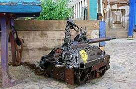 Based in Copenhagen, TEJN's street art has made its mark on most bigger European cities.[2] He is best known by his trademark: "Lock Ons"[3] which are site-specific sculptures or statues, typically welded in recycled iron and chained in the street without permission,[4] often mounted to urban furniture with a bicycle lock.[5] His second most preferred media is paintings on paper, pasted up with wheatpaste on a wall.[6][7] TEJN also makes installations,[8] stencil-art, and conceptual art.[9]