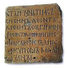 The Temnić inscription (Serbian: Temnićki natpis/Темнићки натпис) is one of the oldest records of Old Church Slavonic Cyrillic script from the territory of Serbia. The limestone plate was discovered in the vicinity of a school in the village of Gornji Katun, near Varvarin, in the region of Temnić in Pomoravlje. It was acquired by the National Museum of Serbia in 1909. The tablet represents a scientific conundrum as no other remains of an edifice were found and paleographic and linguistic analysis of the text reveals little information.[1][2][3]