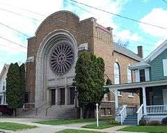 Temple B'Nai Israel is a historic synagogue located at Olean in Cattaraugus County, New York. It was built in 1929, and is a three- to four-story tall, light brown brick structure with terra cotta decorative details. It measures 85 feet long, 42 feet wide, and 50 feet tall. The front facade features a massive arched terra cotta portal encircling a large, round stained glass window. The congregation was established in the 1880s.[2]