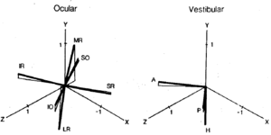 The resulting metric tensor allowed for accurate predictions of the neuronal connections between the three intrinsically orthogonal vestibular canals and the six extraocular muscles that control the movement of the eye.[10]