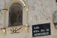 Following transición the Terç is criticised by democratic groupings, who charge the unit with war crimes.[83] They also demand that requeté monuments are dismantled as incompatible with Ley de Memoria Histórica.[84] The Montserrat monument and sites elsewhere are periodically vandalised by unknown perpetrators.[85] According to the internet poll by Catalanist Racó Català service, 77% of respondents consider the Terç soldiers traitors.[86] Streets formerly named after the unit have dropped “Tercio” and are now referring to “Our Lady of Montserrat”.